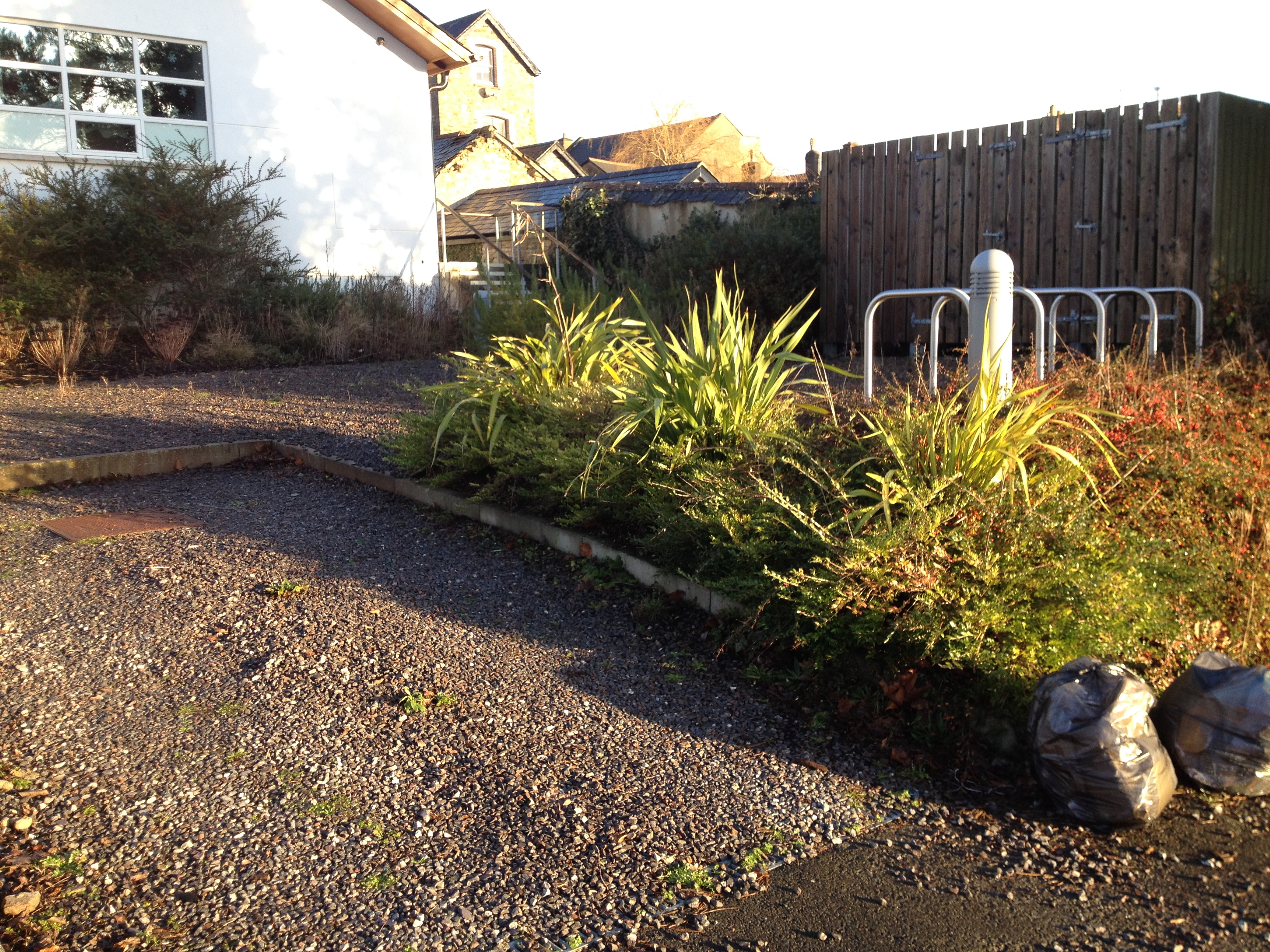 Until recently I had no idea that there were bike stands behind the library. The problem is that there’s usually a car parked in the space on the left and it’s almost impossible to get bikes to the stands (the chrome things on the right).